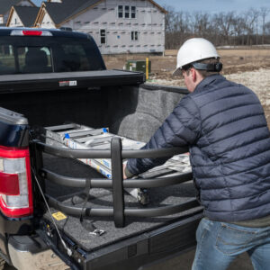 V-shape design is the perfect mix of form and function that keeps your gear secure. Provides the extra clearance needed when used with some tonneau cover rails. Flip it out with the tailgate open to gain up to 2-feet of enclosed cargo area. Flip it inside and close the tailgate to keep tools and smaller cargo contained in the truck bed.