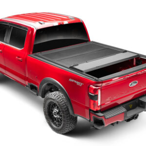 The BAKFlip MX4 TS from RealTruck is our #1 best-selling truck bed cover with easy rack compatibility. This top-of-the-line hard-folding cover is engineered to combine versatility and resilience, making it the ideal choice for truck owners who demand performance from their vehicles. While the BAKFlip MX4 TS sets the standard for keeping your cargo on lockdown, it raises the bar for versatility. Integrated T-slot channels in the bed rails make it easier than ever to add aftermarket crossbars, racks, cargo baskets, carriers, and a variety of cargo accessories in an instant. When was the last time you made perfect use of the space above your truck bed? The BAKFlip MX4 TS truck bed cover features a low-profile design constructed from the highest quality materials, including heavy-duty aluminum top panels finished with a matte black specialty automotive coating that’s scratch and dent-resistant and practically immune to UV-fading. Unlike comparable soft-folding covers, you can’t slice through this cover with a pocketknife. The BAKFlip MX4 TS sits low and flush with your truck’s bed caps yet offers heavyweight cargo protection for whatever you haul. With the BAKFlip MX4 TS, full bed access is always quick and easy. Just flip the panels forward to the cab, engage the integrated prop rods to secure the cover, and you’re ready to go. Whether you’re exploring the wilderness, out on a family adventure, or hauling gear to the job site, you’re guaranteed that your bed cover will perform.