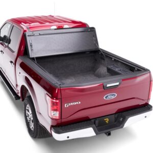 The BAKFlip F1 hard folding truck bed cover comes equipped with an FRP (Fiberglass Reinforced Polymer) top surface, providing superior dent, ding and scratch resistance. The heavy-duty aluminum panels that line the underside give the cover its strength and durability. Together, these make the F1 our top of the line BAKFlip, offering a stylish and secure cover for the long haul. The F1’s rugged design is made to perform in severe working and weather conditions. Rain, hail or snow – the F1 has you covered. Quickly and easily fold and lock the cover in the flipped up position for hauling large loads. The F1’s advanced infrastructure and upgraded components provide unrivaled strength and security, and are backed by an extended 3-year warranty.