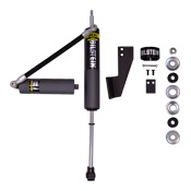 Bilstein B8 8100 reservoir shock absorbers are a large bore 2.65-in OD direct fit solution for lifted trucks and SUVs. Constructed from aerospace quality billet components, the large 2.65-in OD shock body shock body offers a higher oil volume capacity to control heat while tackling rough road surfaces over long distances. Each B8 8100 offers a unique remote or piggyback reservoir solution for an easy, hassle free installation. These shock absorbers feature a monotube design for consistent fade free performance and utilize velocity sensitive digressive valve settings which are tuned for each specific application. The large 60mm piston design offers more comfort and control in all driving conditions. The Bilstein B8 8100 will allow you to tame the terrain in comfort.