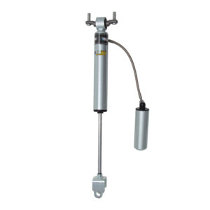 Bilstein B8 5160 remote reservoir shock absorbers are designed as a direct fit solution for lifted trucks and SUVs. The remote reservoir will offer increased cooling capacity and wheel travel to optimize overall performance compared to a traditional shock absorber. These shock absorbers feature a monotube design for consistent fade free performance and utilize velocity sensitive digressive valve settings which are tuned for each specific application. Each shock absorber is fitted with a unique 360 degree swivel banjo hose fitting and an attractive billet reservoir mount where applicable providing a clean, low profile installation. B8 5160 remote reservoir shock absorbers will increase overall durability of your vehicle allowing you to conquer the harshest of off-road environments.