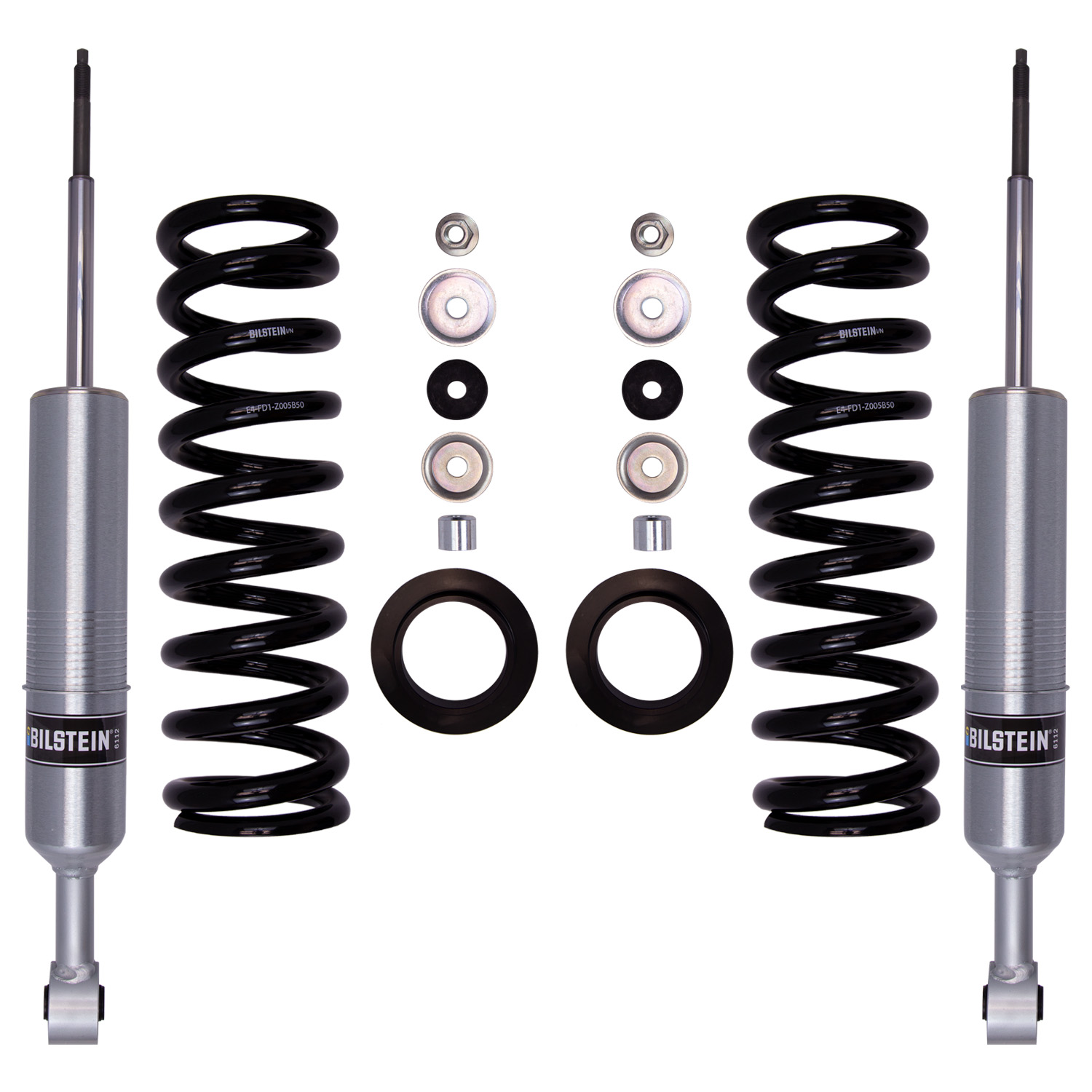 Bilstein B8 6112 leveling kits are designed to provide more ground clearance, allow for larger tires, and increase wheel travel. Multiple snap-ring grooves in the body allow for different spring seat positions, providing 0-2.75 inches of front lift (depending on application). These kits consist of (2) 60mm shock absorbers combined with (2) custom matched cold wound coil springs and (2) billet aluminum spring seats. The large 2.65-in OD body and 60mm digressive piston allows for increased damping control for optimal on-road and off-road capabilities. Experience the legendary Bilstein off-road experience with the best direct fit spring and shock kit for your light truck or SUV.