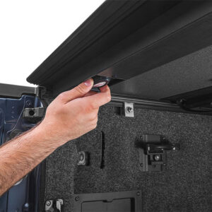 An Extang exclusive Secure Rotary Latch System offers effortless operation. With a quick twist of the knob and a lift, the cover grants instant bed access, making loading and unloading cargo a breeze