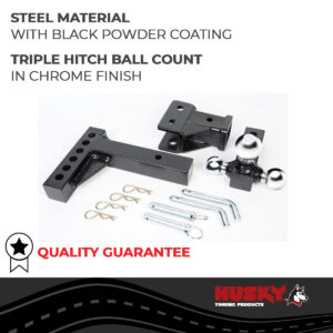 Class III/ IV Fits 2 Inch Receiver 2000-10000-14000 Gross Trailer Weight/ 200-1000-1400 Tongue Weight Chrome Tri-Ball- 1-7/8 Inch And 2 Inch And 2-5/16 Inch Adjustable Non-Folding Black Steel
