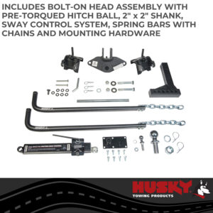 Husky?s Round Bar weight distribution hitch gets the job done with a classic design with the addition of some great design features. The head design provides for reduced installation time and allows easy access to the hitch ball shank. A sway control ball