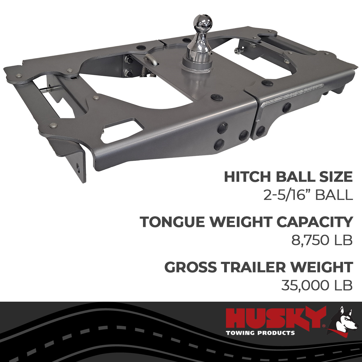 Husky Towing offers a vehicle specific underbed gooseneck hitch for trucks without the OEM prep package. The center section bolts directly to the factory crossmember without the need for additional mounting rails and only requires drilling for safety chain loops and center cup hole. Hitch includes 2 5/16 Inch Gooseneck Ball rated at 35K and is removable to allow for full bed access.
