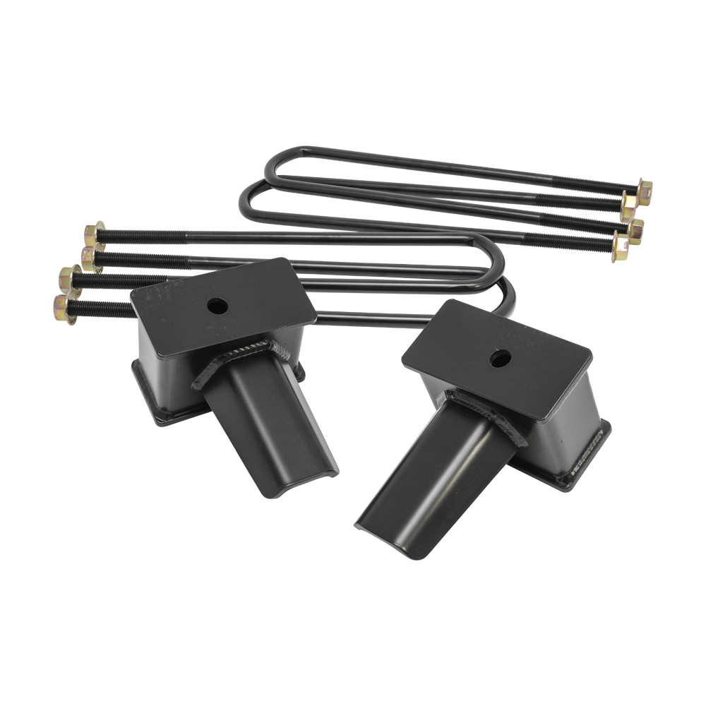 ReadyLIFT OEM-style rear block kits are available for 2017-2023 Ford Super Duty model-specific applications. These 4.0″ fabricated steel Tapered Rear Block Kits include two (2) rear blocks, four (4) long e-coated u-bolts and eight (8) nuts and washers. Based on OEM designs and never made out of lightweight extrusions, our 4″ 2017-2023 Ford Super Duty Tapered Rear Blocks have Integrated OEM style bump stops. ReadyLIFT Block Kits will put a slight rake back in your truck for hauling or towing and are designed to work with your ReadyLIFT Suspension Leveling Kit. In fact, these blocks are the ideal Tow Package upgrade for not only for stock height vehicles but lifted or leveled trucks too! Like all ReadyLIFT products these block kits come with our Limited Lifetime Warranty. NOTE: 66-2740 4″ block is for use on 2017-2023 Ford F250 Super Duty 4WD trucks with 1-piece drive shaft. Lift height will vary depending on what factory block your truck has. NOTE: Not for use on 2019-UP F350. NOTE: The lift blocks in this kit are not designed to work with aftermarket or factory add-on air spring/load leveling kits that attach to the bump stop tangs. Use of this type of air bag system will void all block warranties and can cause the failure of the block bump stop tang.