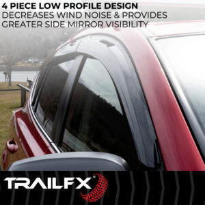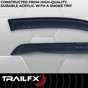 Let fresh air in while keeping the weather out. Stylishly designed and simple to install, TrailFX window vents are the perfect all weather accessory for any vehicle. All TrailFX window vents feature a limited lifetime warranty.