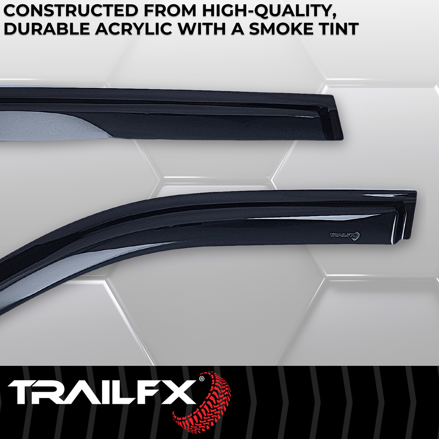 Let fresh air in while keeping the weather out. Stylishly designed and simple to install, TrailFX window vents are the perfect all weather accessory for any vehicle. All TrailFX window vents feature a limited lifetime warranty.