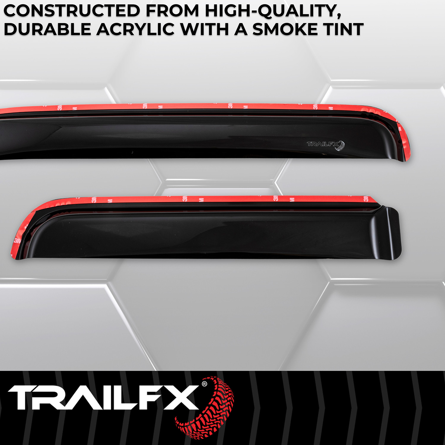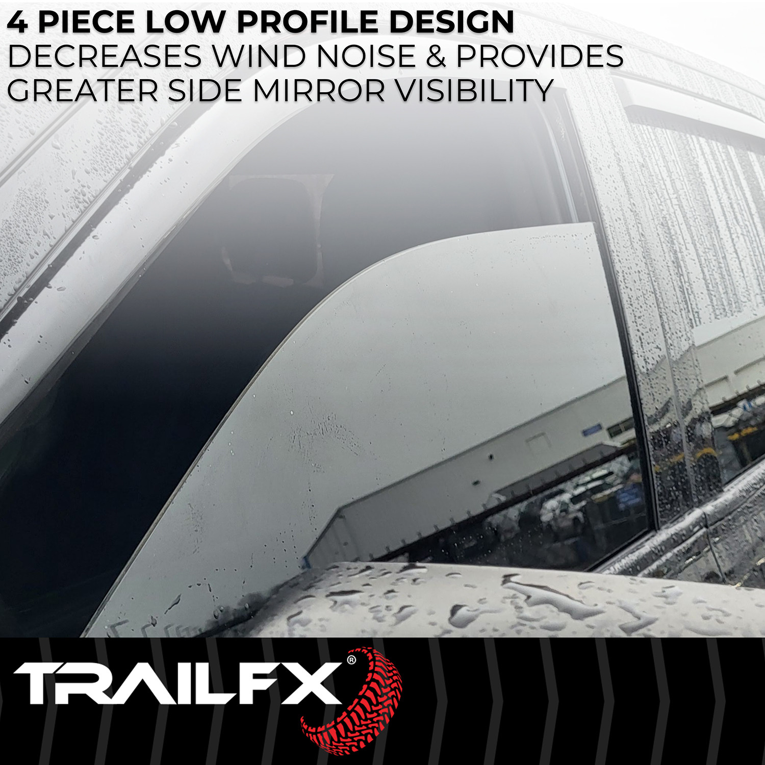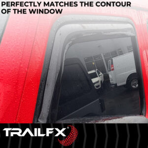 Let fresh air in while keeping the weather out. Stylishly designed and simple to install, trailFX window vents are the perfect all weather accessory for any vehicle. All TrailFX window vents feature a limited lifetime warranty.