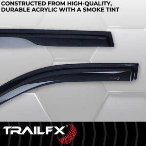 Let fresh air in while keeping the weather out. Stylishly designed and simple to install, TrailFX window vents are the perfect all weather accessory for any vehicle. All TrailFX window vents feature a limited lifetime warranty.