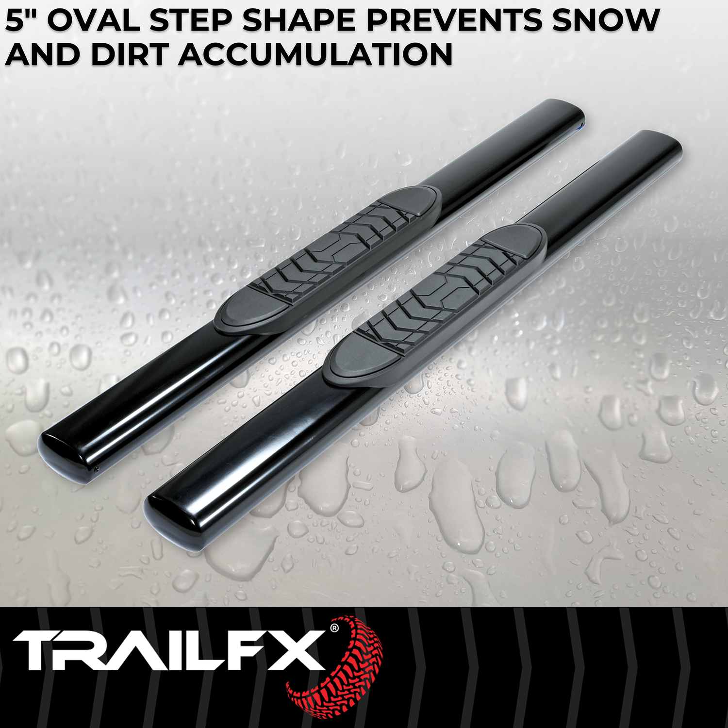 With Step Pads 5 Inch Oval Straight Powder Coated Black Steel With Welded End Caps Rocker Panel Mount