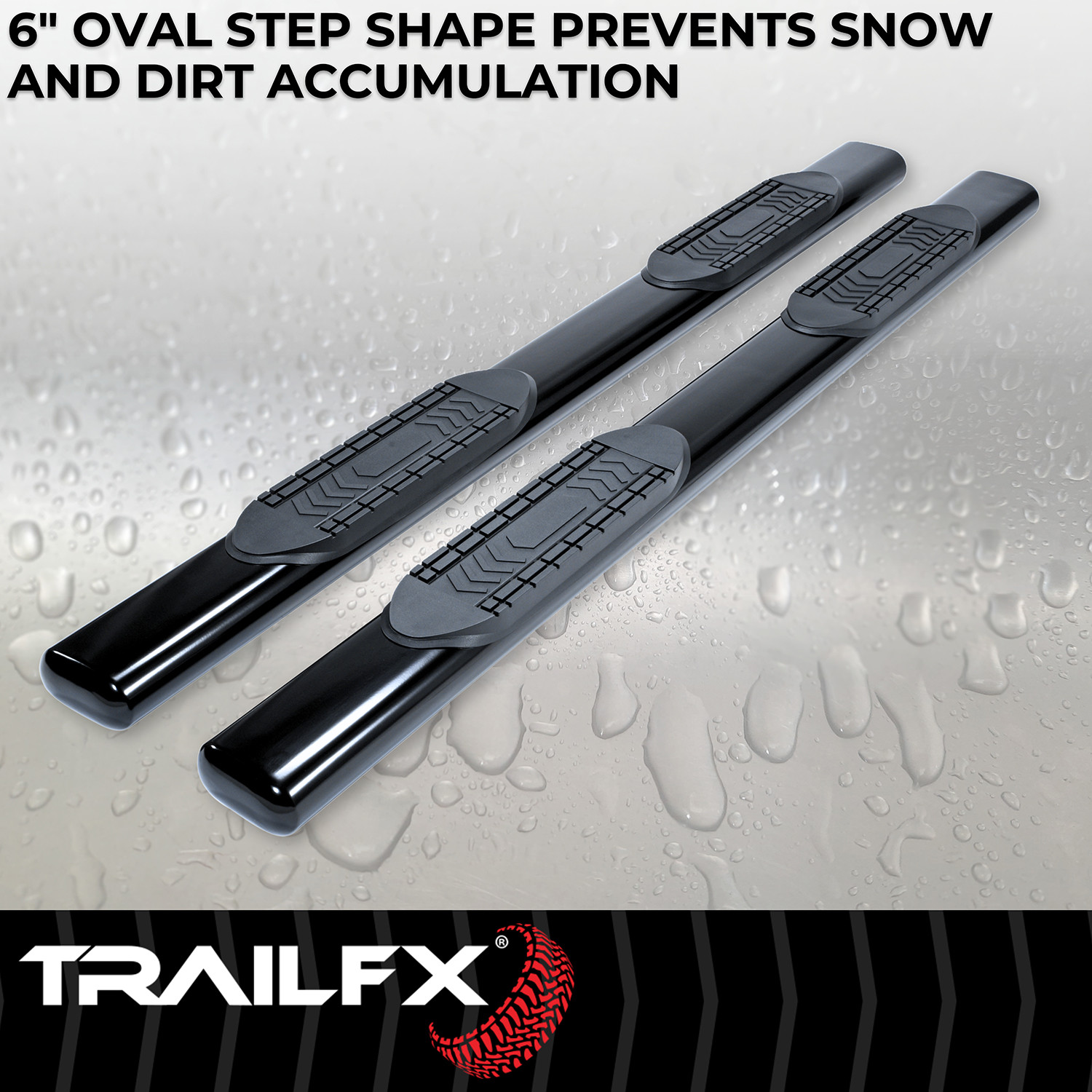 With Step Pads 6 Inch Oval Straight Powder Coated Black Steel With Welded End Caps Rocker Panel