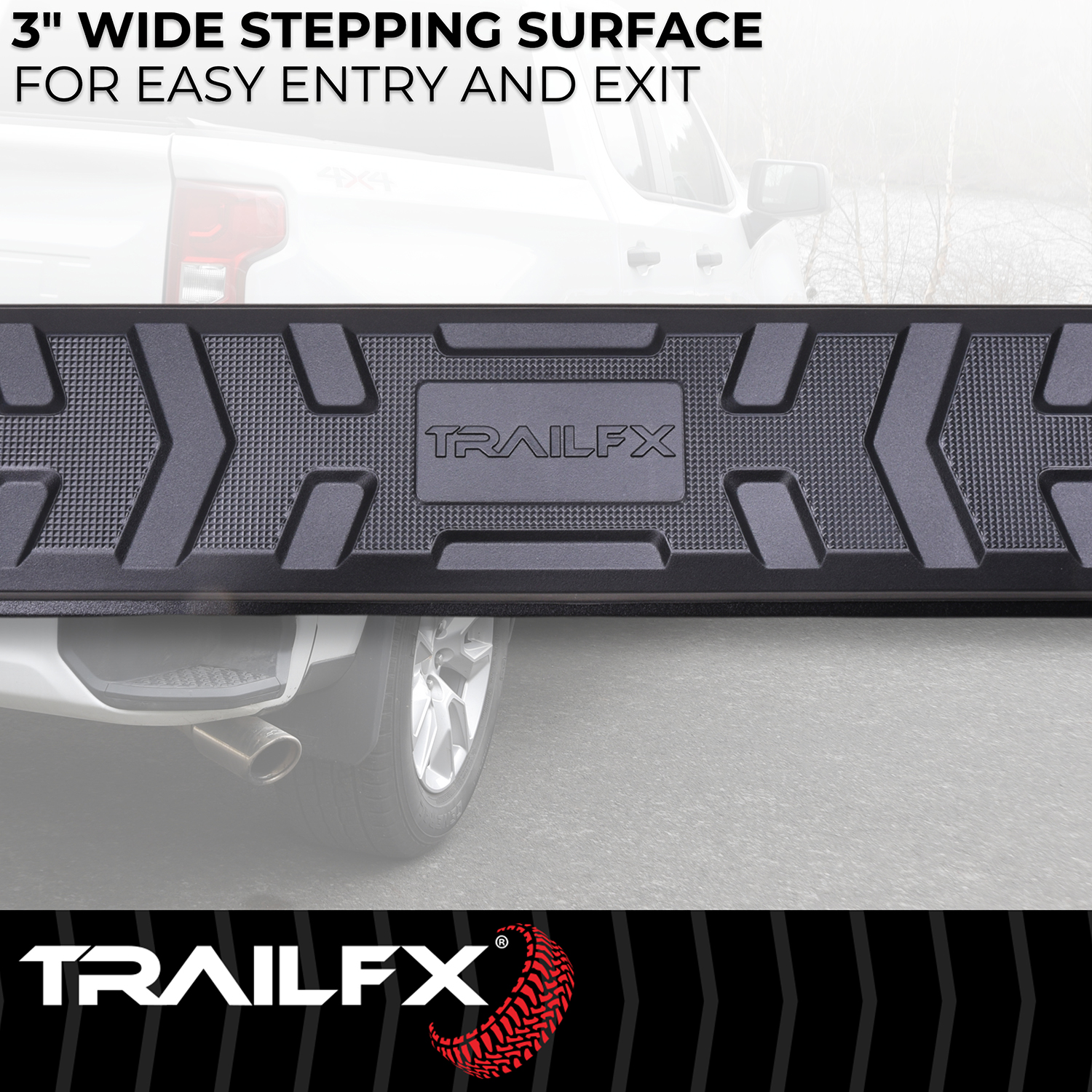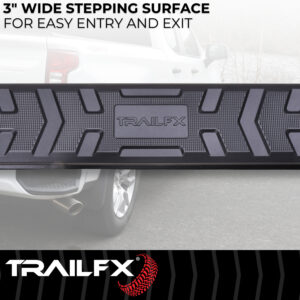 TrailFX A4 Series is constructed from weatherproof hexagonal extruded aluminum combined with unique styling and performance. A4 series steps include brackets with plastic covers, custom step pads and titanium black powder coat finish long lasting durability.