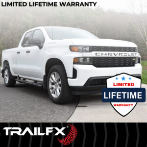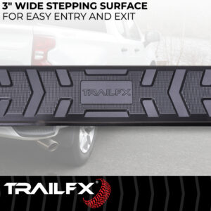 TrailFX A4 Series is constructed from weatherproof hexagonal extruded aluminum combined with unique styling and performance. A4 series steps include brackets with plastic covers, custom step pads and titanium black powder coat finish long lasting durability.