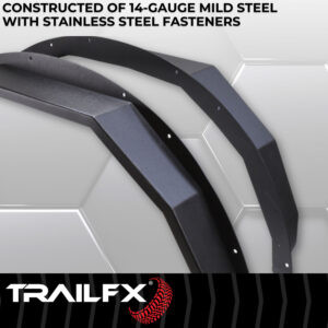 TrailFX Ford Bronco flat steel fender flares are a durable and stylish addition that provide additional clearance for larger wheel and tire packages as well as protection from road or tail hazards.