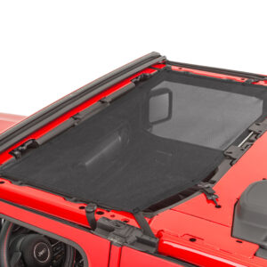 TrailFX Mesh Bikini Tops provides shade when soft top or hard top is removed while allowing cool breeze and wind through the Jeep cabin. Easy to install with straps and loops secured to the roll bar and windshield, no tools are required and can be left on under the hard top or soft top.